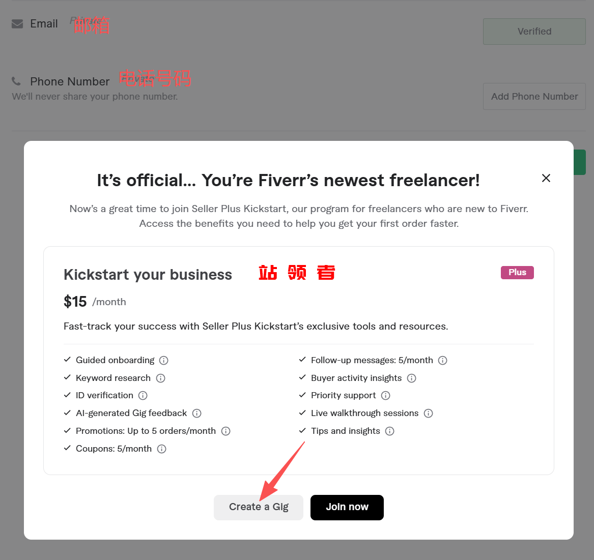 第九步,填写你的邮箱账号和电话号码。填写好之后平台会让你验证邮箱的真实性。点击继续之后会弹出来一个收费的工具,我们直接点击Create(创建)。